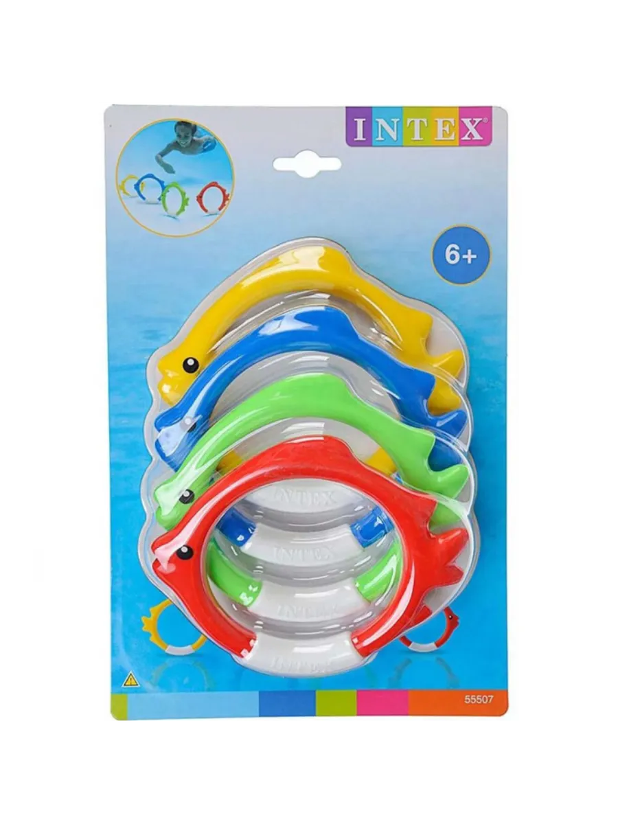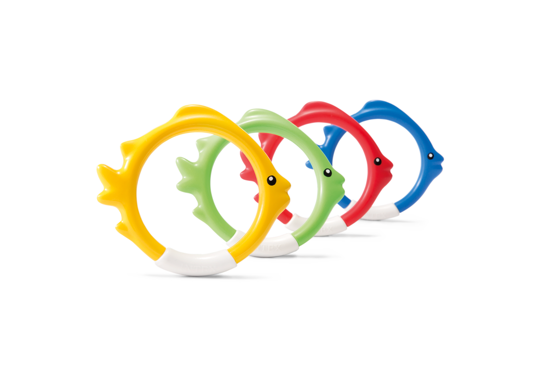 Многие дети сначала учатся нырять, а потом плавать, поэтому для них и были созданы цветные рыбные кольца. Родители могут погрузить рыбок в бассейне, и начинающий пловец с удовольствием начнет нырять за ними.