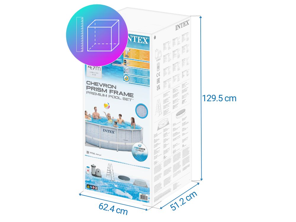 Круглый каркасный бассейн для всей семьи Intex Chevron Prism Frame станет излюбленным местом отдыха для любителей насладиться прохладой водой в жаркий день, окунуться с головой и поплескаться в компании близких. Надежная конструкция, легкая в сборке, высокопрочный материал бортиков и оптимальная для комфортного использования комплектация - этот каркасный бассейн для дачи с голубыми, словно волны океана внутренними стенками, легко заменит природный водоем!