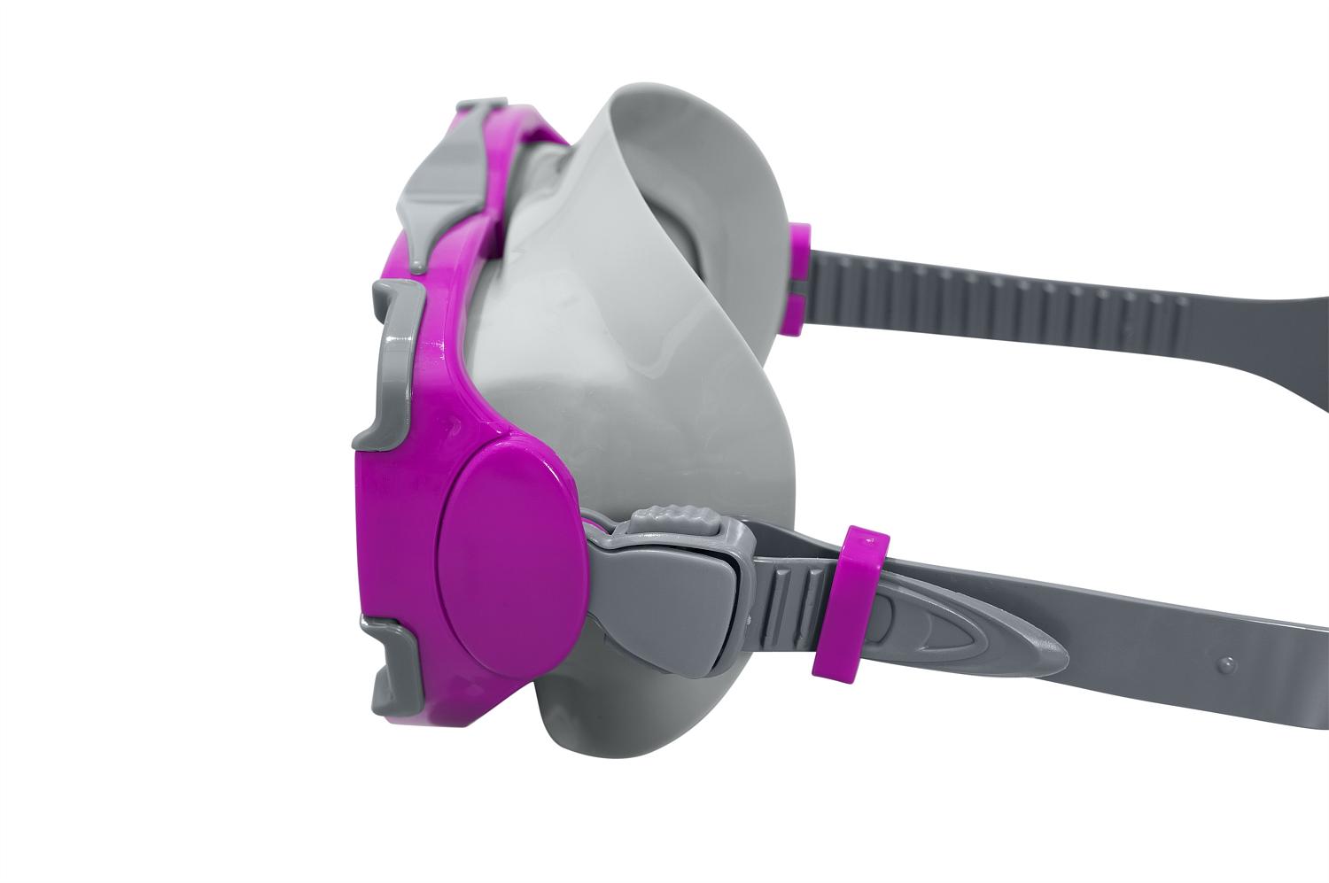 Обод маски плотно и мягко прилегает к лицу, полностью исключая попадание воды. Изготовлена из качественного гипоаллергенного и термопластичного ПВХ. Линза из поликорбаната, обеспечивает хороший обзор, прочная, надежная, абсолютно безопасная. Ремешки силиконовые, эластичные.