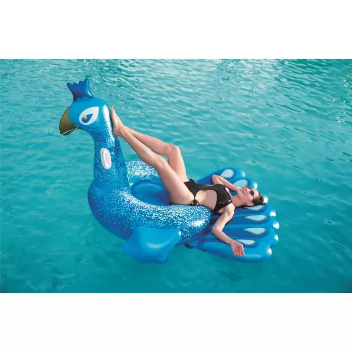 Надувной плот Павлин от компании BestWay в виде большой синей птицы. За последние несколько лет такие надувные животные практически вытеснили с пляжей классические матрасы. И это не удивительно! Ведь по своим свойствам они ничем не уступают предшественникам, а дизайн никого не может оставить равнодушным. Устоять перед фотосессией с этим красавцем никто не способен!
