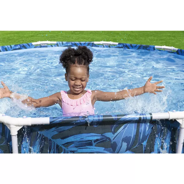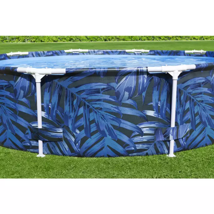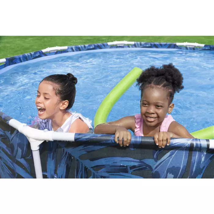 Каркасный бассейн Bestway 56985 отличается яркой расцветкой. Чаша выполнена из высококачественного трехслойного ПВХ: два слоя плотного винила и между ними сетка из полиэстера для особой прочности. Цвет чаши бассейна снаружи разноцветный с элементами джунглей и диких животных. Каркас металлический, покрытый предотвращающим появление коррозии слоем пластика.