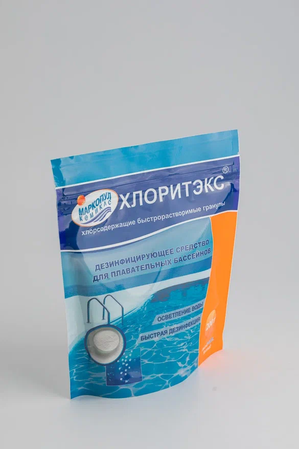 ХЛОРИТЭКС - быстрорастворимый хлорсодержащий органический препарат для дезинфекции на основе производного изоциануровой кислоты. ХЛОРИТЭКС отличается высокой растворимостью в воде, благодаря чему быстро достигается оптимальная концентрация свободного хлора в воде бассейна. Помимо своего основного обеззараживающего эффекта, ХЛОРИТЭКС можно использовать для обработки виниловых поверхностей, резиновых ковриков и т.д., так как ХЛОРИТЭКС не имеет вредного воздействия на подобные материалы и не обесцвечивает их.
