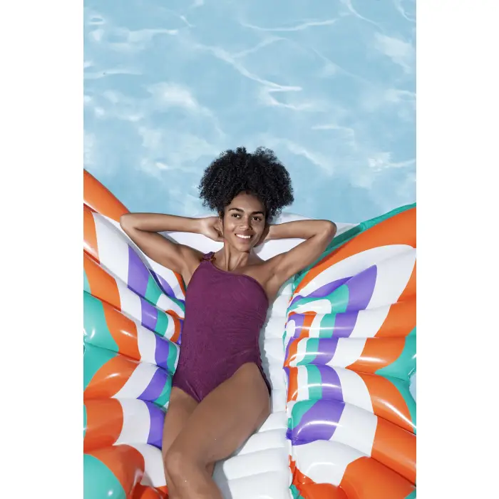 Этим летом ваше сердце забьётся, когда вы увидите надувной матрас Bestway® Boho Butterfly™! Этот надувной матрас с уникальным рисунком и формой бабочки имеет размеры 186 x 146 x 21 см в надутом состоянии и с комфортом вмещает одного взрослого человека весом до 100 кг. Прочная внутренняя конструкция обеспечивает комфорт и поддержку, а компактный размер позволяет легко положить его в сумку, отправляясь в бассейн, на пляж или на отдых. Порхайте, как бабочка, и отдыхайте стильно с надувным матрасом Bestway® Boho Butterfly.