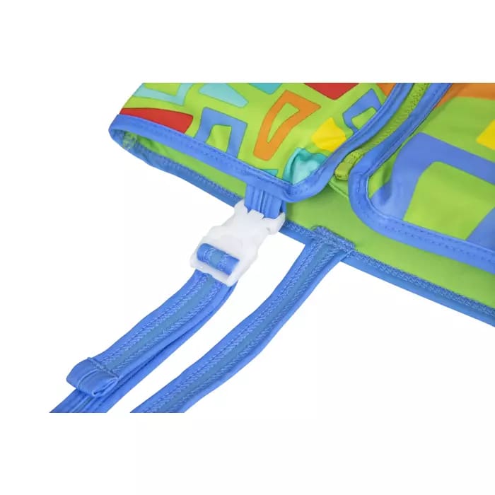 Детский жилет с пенопластовыми вставками поможет научиться держаться на воде и чувствовать себя уверенно. Яркая расцветка не позволит потерять чадо из вида. Выполнен жилет из приятного к телу материала. Широкие лямки не натрут нежную кожу малышей. Жилет застегивается на молнию, которая оборудована защитой от произвольного открывания. Для более плотной посадки и предотвращения сползания жилет оснащен регулируемым ремешком, который нужно пропустить между ног ребенка и застегнуть.