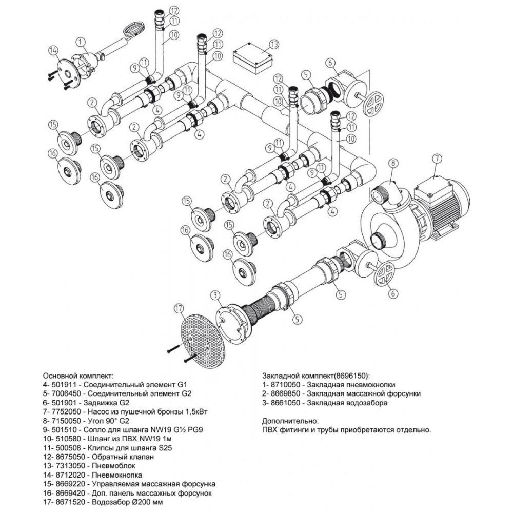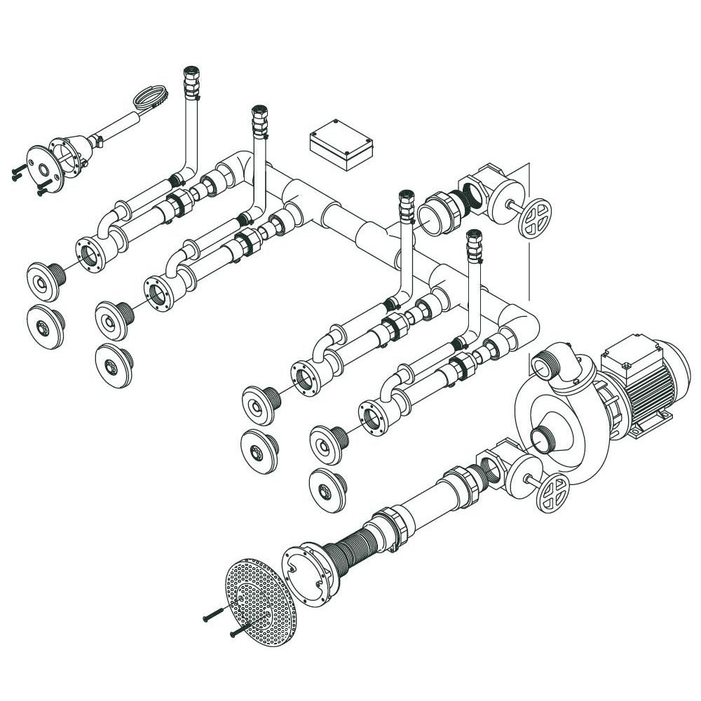 Насосный комплект "Standard 4" 1,5 кВт предназначен для организации гидромассажных процедур в плиточных бассейнах.